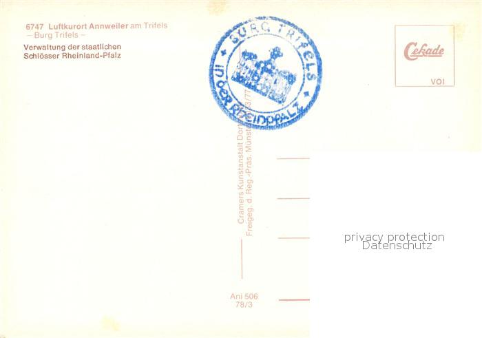 73584639 Annweiler Trifels Burg Trifels postalisch nicht gelaufen Erhaltung siehe scans [LiesaD40] KatCode: 11110007337501