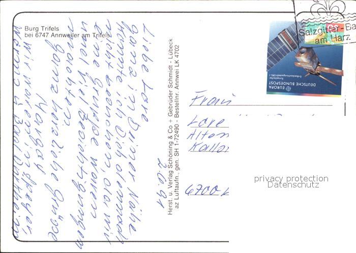 71909376 alte Postkarte Annweiler Trifels Fliegeraufnahme Burg Trifels postalisch gelaufen Erhaltung siehe scans KatCode: 11110007337501