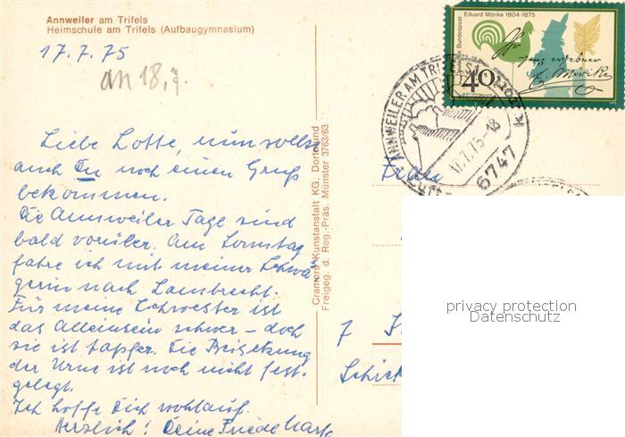 73759889 alte Postkarte Annweiler Trifels Heimschule am Trifels Fliegeraufnahme postalisch gelaufen Erhaltung siehe scans [FriedD77] KatCode: 11110007337501