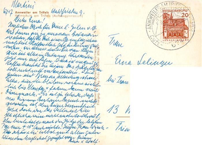 73945891 alte Postkarte Annweiler Trifels Heimschule am Trifels postalisch gelaufen Fliegeraufnahme Erhaltung siehe scans [FriedD77] KatCode: 11110007337501