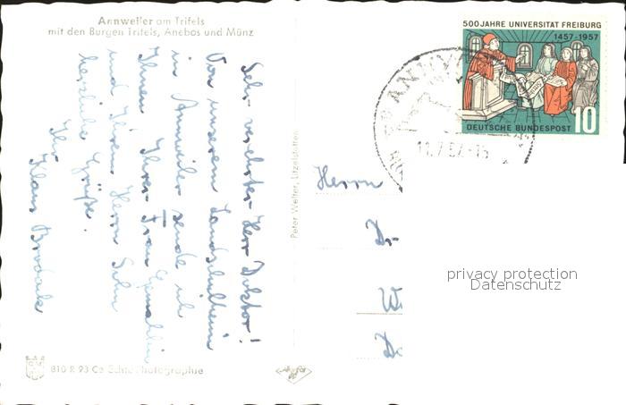 72095426 alte Postkarte Annweiler Trifels mit den Burgen Trifels Anebos und Muenz postalisch gelaufen Erhaltung siehe scans KatCode: 11110007337501