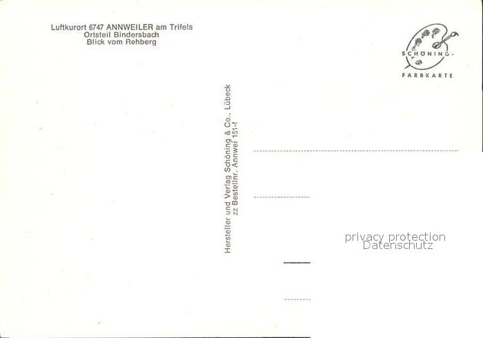 72506820 Annweiler Trifels Ortsteil Bindersbach Blick vom Rehberg postalisch nicht gelaufen Erhaltung siehe scans KatCode: 11110007337501