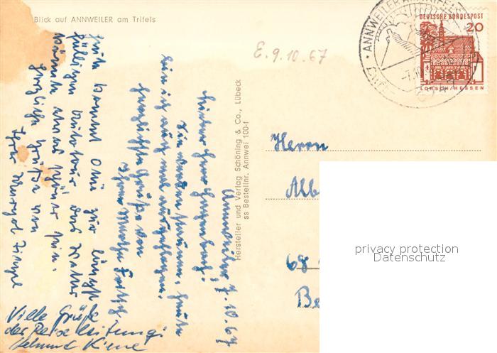 73622860 alte Postkarte Annweiler Trifels Panorama postalisch gelaufen Erhaltung siehe scans [WerneD78] KatCode: 11110007337501
