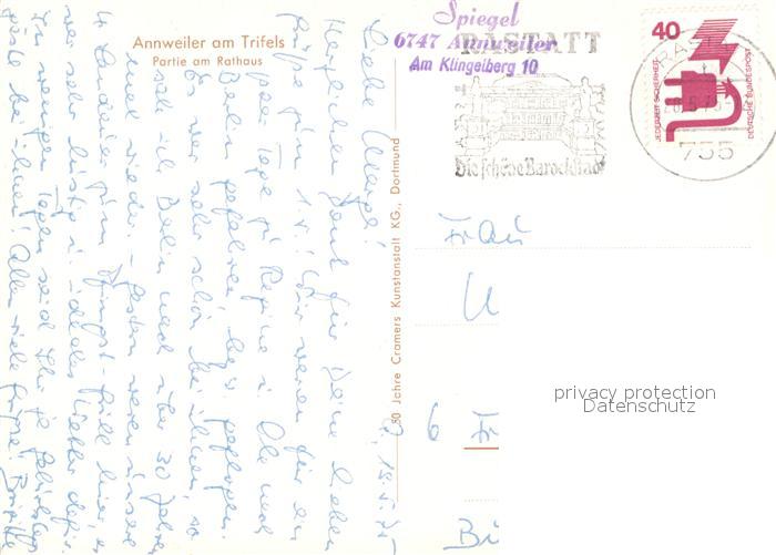 73249917 alte Postkarte Annweiler Trifels Partie am Rathaus postalisch gelaufen Erhaltung siehe scans [WerneD78] KatCode: 11110007337501