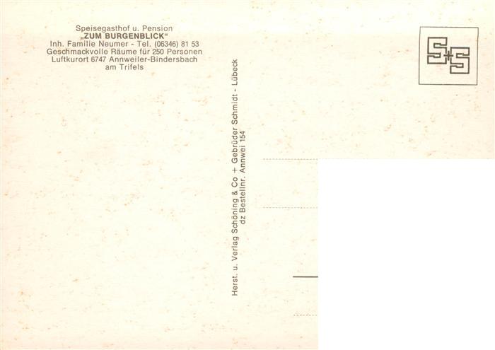 73875423 Annweiler Trifels Pension Zum Burgblick Gastraeume Fliegeraufnahme postalisch nicht gelaufen Erhaltung siehe scans [FriedD77] KatCode: 11110007337501