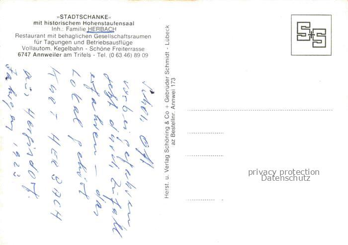 74043377 Annweiler Trifels Stadtschaenke Annweiler mit historischem Hohenstaufensaal Restaurant postalisch nicht gelaufen Erhaltung siehe scans [FriedD77] KatCode: 11110007337501