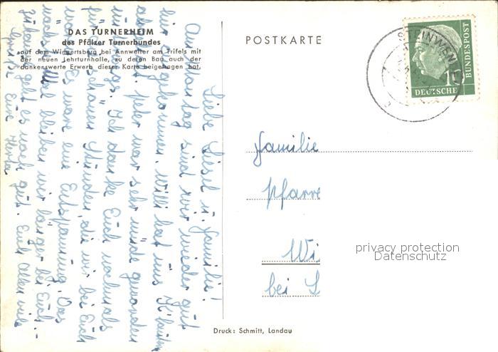 72098789 alte Postkarte Annweiler Trifels Turnerheim des Pfaelzer Turnerbundes auf dem Wingertsberg postalisch gelaufen Erhaltung siehe scans KatCode: 11110007337501