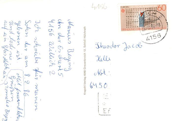 73943879 alte Postkarte Anrath Rhein Haus Broich Marktplatz Kirche Altenheim Theodor-Heuss-Park Bildungszentrum postalisch gelaufen Erhaltung siehe scans [FriedD77] KatCode: 11110005166036