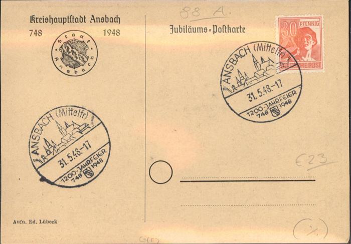 71033613 Ansbach Mittelfranken 1200 Jahrfeier postalisch nicht gelaufen KatCode: 11110009561000