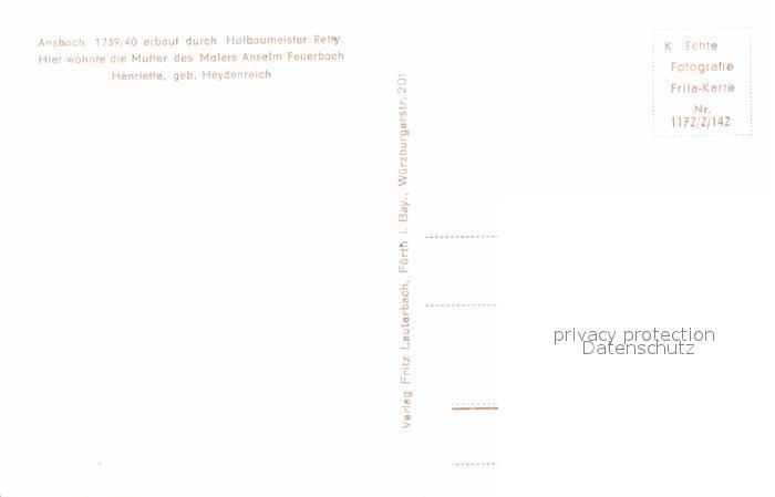 72884399 Ansbach Mittelfranken Doppelhaus Familie Burckhardt postalisch nicht gelaufen Erhaltung siehe scans [PaolaD17] KatCode: 11110009561000