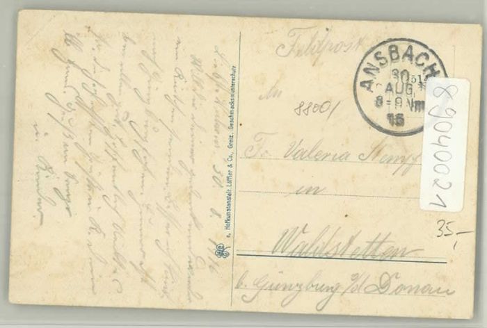 40250129 Ansbach Mittelfranken Endressallee Strasse x 1916 KatCode 11110009561000