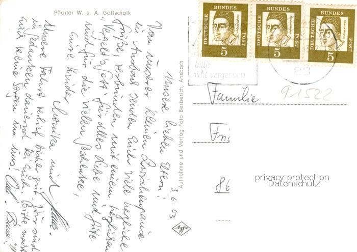 73854585 alte Postkarte Ansbach Mittelfranken Gasthof zum Lamm Gastraeume postalisch gelaufen Erhaltung siehe scans [WerneD78] KatCode: 11110009561000