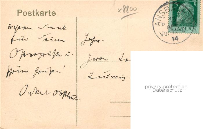 42957436 alte Postkarte Ansbach Mittelfranken Gesamtansicht postalisch gelaufen Erhaltung siehe scans [AndreD76] KatCode: 11110009561000