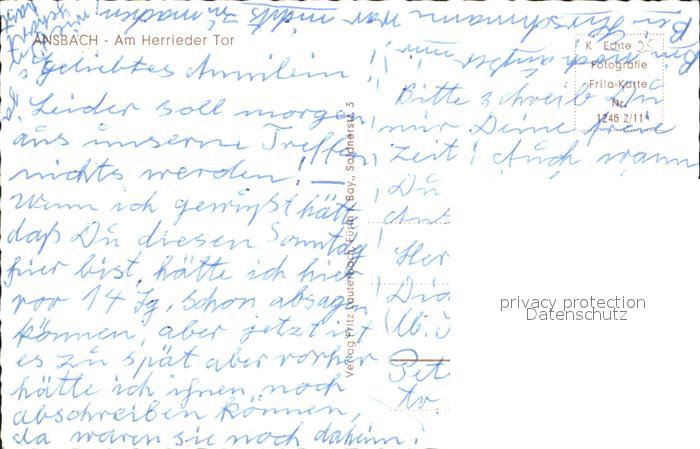 71996218 Ansbach Mittelfranken Herrieder Tor postalisch nicht gelaufen Erhaltung siehe scans KatCode: 11110009561000