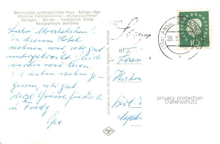 33612152 alte Postkarte Ansbach Mittelfranken Hotel Schwarzer Bock Restaurant Giebelhaus postalisch gelaufen Erhaltung siehe scans [FriedD77] KatCode: 11110009561000