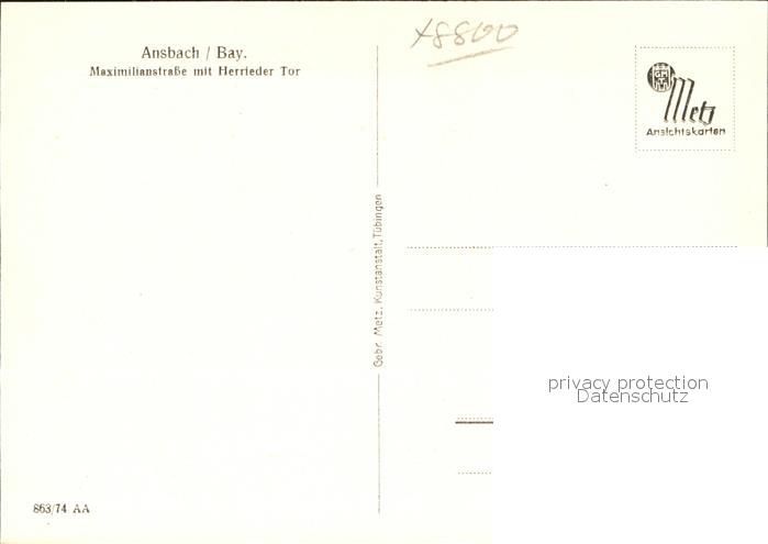 41783863 Ansbach Mittelfranken Maximilianstrasse mit Herrieder Tor postalisch nicht gelaufen Erhaltung siehe scans KatCode: 11110009561000