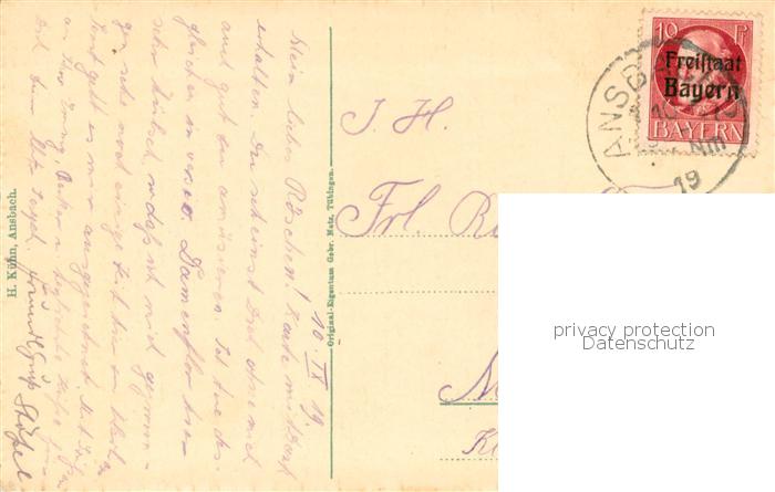 73772130 alte Postkarte Ansbach Mittelfranken Maximilianstrasse postalisch gelaufen Erhaltung siehe scans [FriedD77] KatCode: 11110009561000