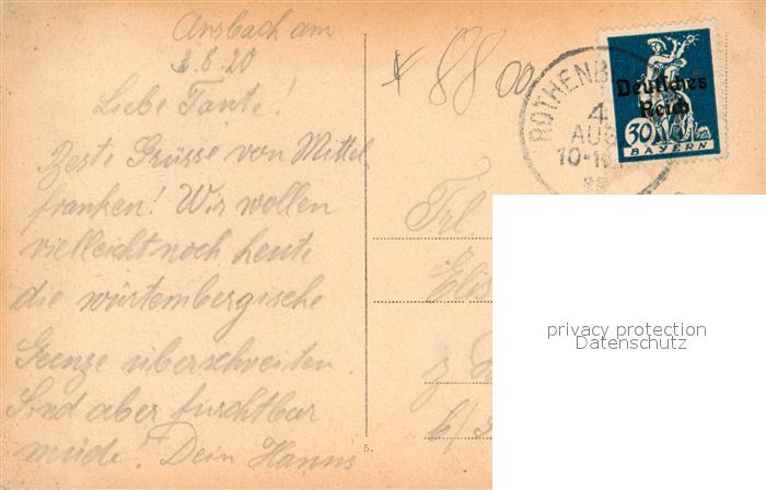 42957433 alte Postkarte Ansbach Mittelfranken Oberer Markt postalisch gelaufen Erhaltung siehe scans [AndreD76] KatCode: 11110009561000