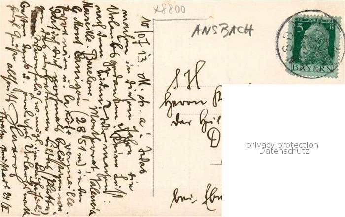 42957434 alte Postkarte Ansbach Mittelfranken Paar auf der Treppe postalisch gelaufen Erhaltung siehe scans [AndreD76] KatCode: 11110009561000
