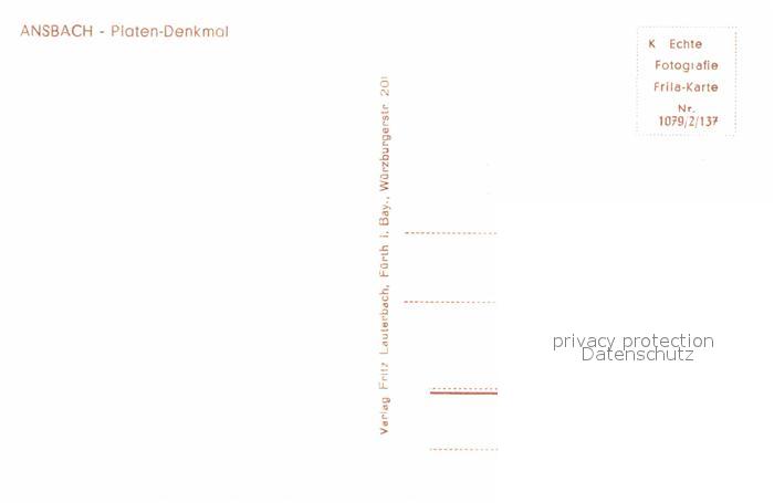 72892391 Ansbach Mittelfranken Platen-Denkmal postalisch nicht gelaufen Erhaltung siehe scans [PaolaD17] KatCode: 11110009561000
