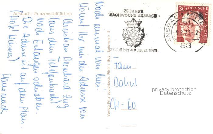 73560281 alte Postkarte Ansbach Mittelfranken Prinzenschloesschen postalisch gelaufen Erhaltung siehe scans [KathaD81] KatCode: 11110009561000