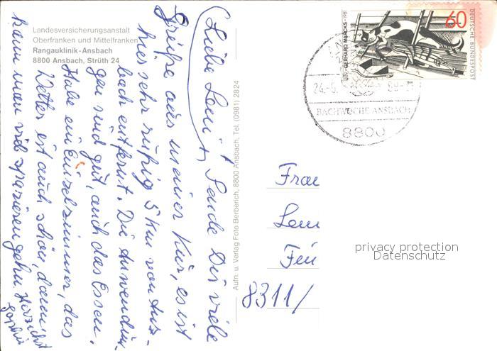 72125887 alte Postkarte Ansbach Mittelfranken Rangauklinik Teilansichten postalisch gelaufen Erhaltung siehe scans KatCode: 11110009561000