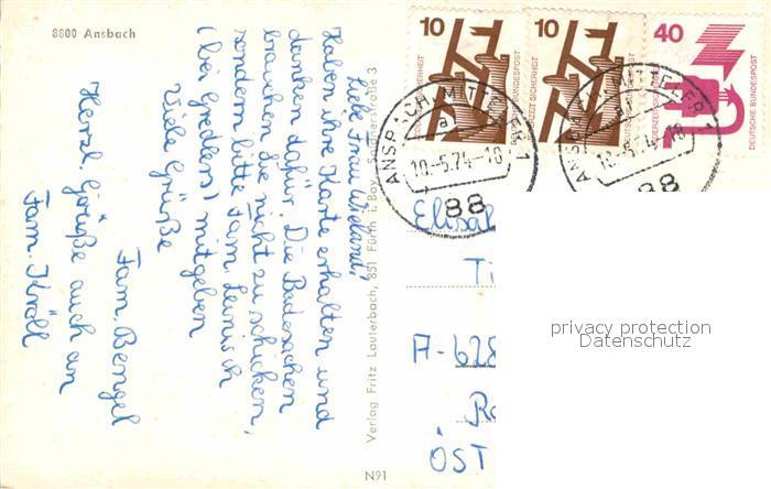 72890452 alte Postkarte Ansbach Mittelfranken Schloss Hofgarten Orangerie Kirche Schlosstor Herriedertor Brunnen Prinzenschloesschen postalisch gelaufen Erhaltung siehe scans [FriedD77] KatCode: 11110009561000