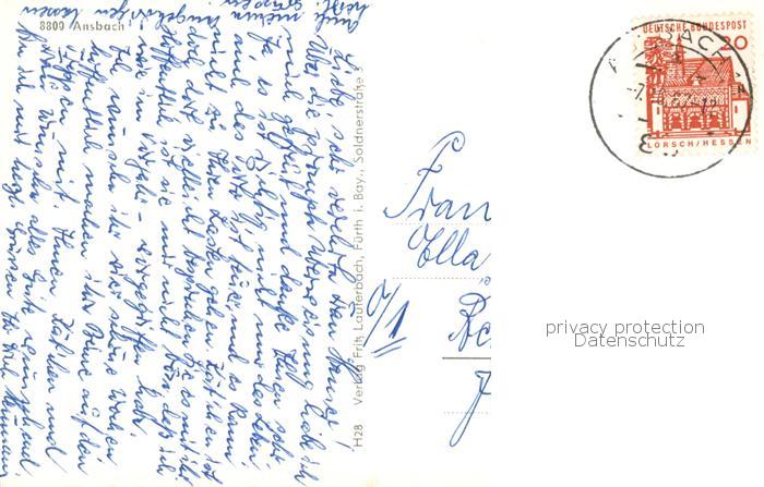 73811011 alte Postkarte Ansbach Mittelfranken Schloss Hofgarten Orangerie Kirchen Schlosstor Herriedertor Brunnen Prinzenschloesschen postalisch gelaufen Erhaltung siehe scans [FriedD77] KatCode: 11110009561000