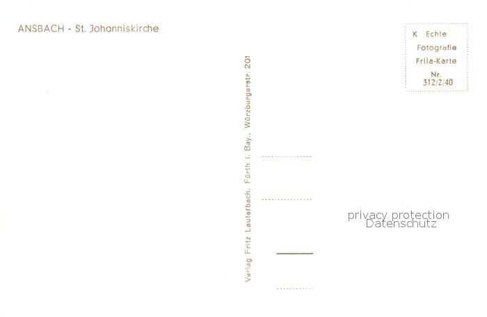 73043234 Ansbach Mittelfranken St Johanniskirche Inneres postalisch nicht gelaufen Erhaltung siehe scans [WerneD78] KatCode: 11110009561000