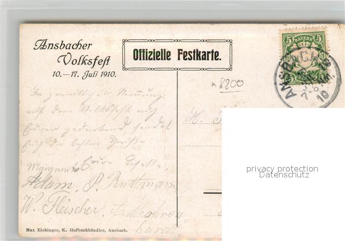 42958773 alte Postkarte Ansbach Mittelfranken Volksfest 1910 postalisch gelaufen Erhaltung siehe scans [AndreD76] KatCode: 11110009561000