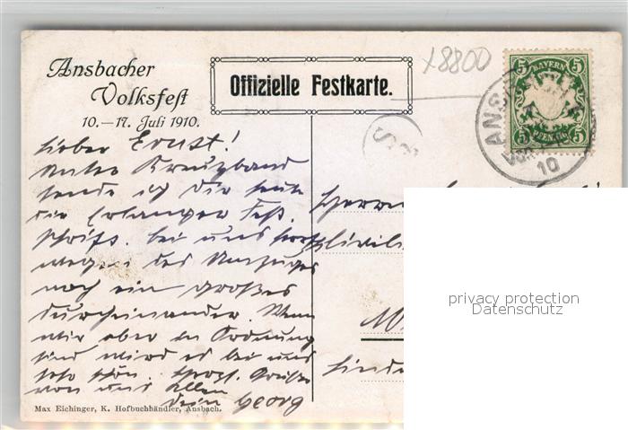 42958786 alte Postkarte Ansbach Mittelfranken Volksfest 1910 postalisch gelaufen Erhaltung siehe scans [AndreD76] KatCode: 11110009561000