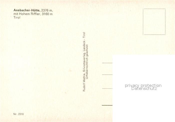 13221063 Ansbacherhuette mit Hohem Riffler postalisch nicht gelaufen Erhaltung siehe scans [LiesaD40] KatCode: 11390