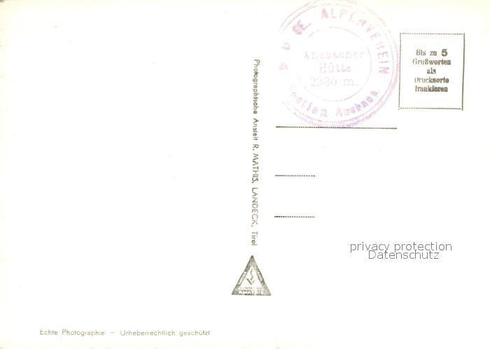 72940072 Ansbacherhuette mit Hoher Riffler Verwallgruppe postalisch nicht gelaufen Erhaltung siehe scans [FriedD77] KatCode: 11390