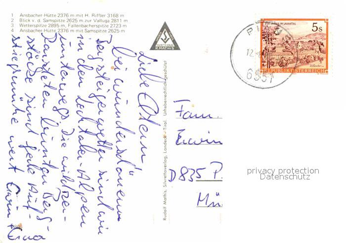 72626797 alte Postkarte Ansbacherhuette Panorama Lechtaler Alpen postalisch gelaufen Erhaltung siehe scans [FriedD77] KatCode: 11390
