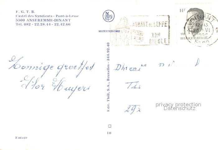 73265581 carte postale Anseremme Castel des Syndicats Pont a Lesse postalisch gelaufen Erhaltung siehe scans [KathaD81] KatCode: 11070091010351