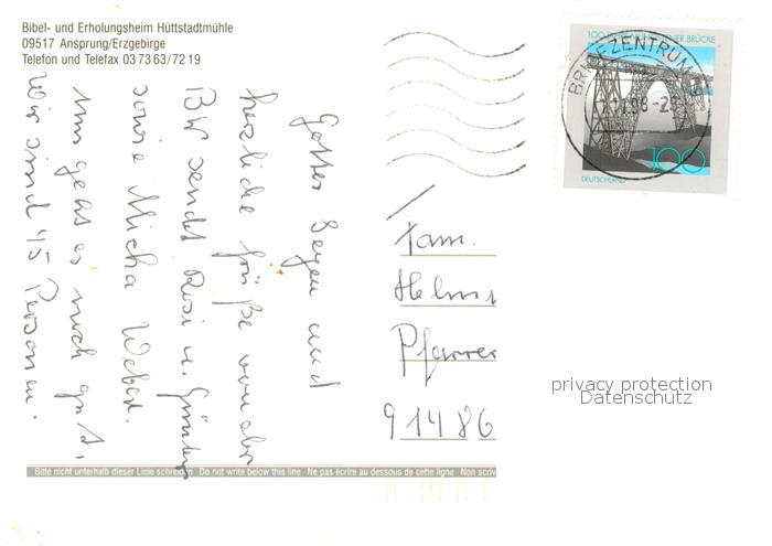 73645509 alte Postkarte Ansprung Bibel und Erholungsheim Huettstadtmuehle postalisch gelaufen Erhaltung siehe scans [WerneD78] KatCode: 11110014181410