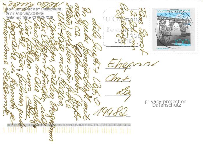 74027602 alte Postkarte Ansprung Bibel- und Erholungsheim Huettstadtmuehle postalisch gelaufen Erhaltung siehe scans [FriedD77] KatCode: 11110014181410