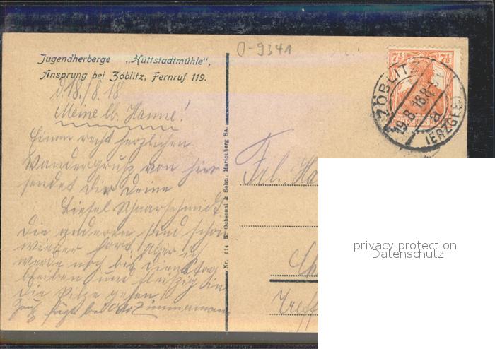 42236574 alte Postkarte Ansprung Jugendherberge Huettstadtmuehle postalisch gelaufen Erhaltung siehe scans KatCode: 11110014181410