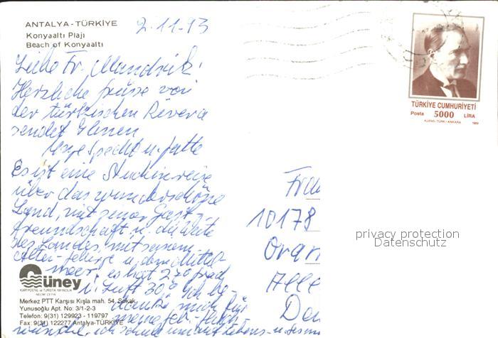 old postcard Antalya Beach Konyaalti postalisch gelaufen