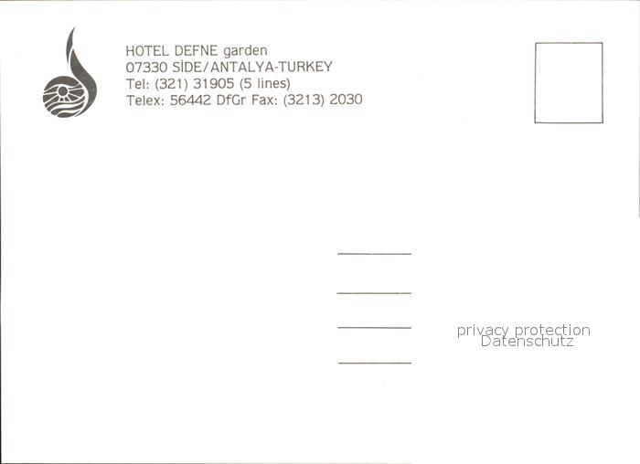 Antalya Hotel Defne postalisch nicht gelaufen Erhaltung siehe scans