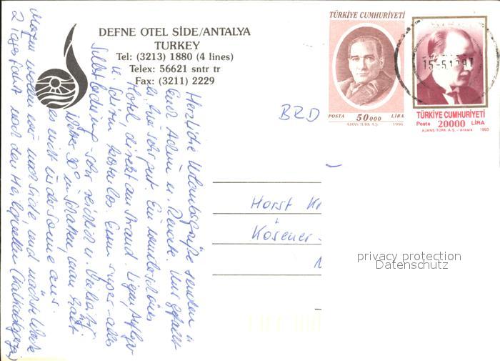 old postcard Antalya Hotel Denfe Strand Pool postalisch gelaufen Erhaltung siehe scans