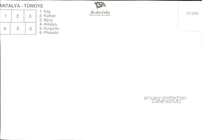 Antalya Kas Kalkan Myra Kursunlu Phaselis postalisch nicht gelaufen Erhaltung siehe scans