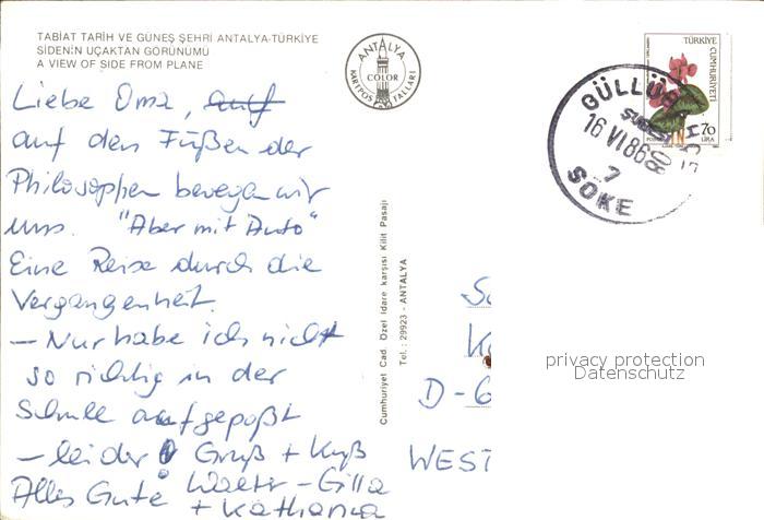 old postcard Antalya Sidenin Ucaktan Gorunumue postalisch gelaufen Erhaltung siehe scans