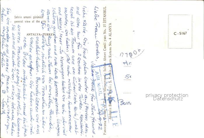 old postcard Antalya Teilansicht postalisch gelaufen Erhaltung siehe scans