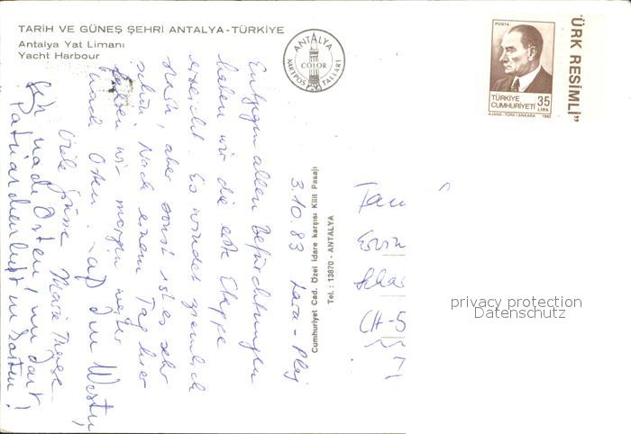 Antalya Yachthafen Tuerkische Riviera postalisch nicht gelaufen Erhaltung siehe scans