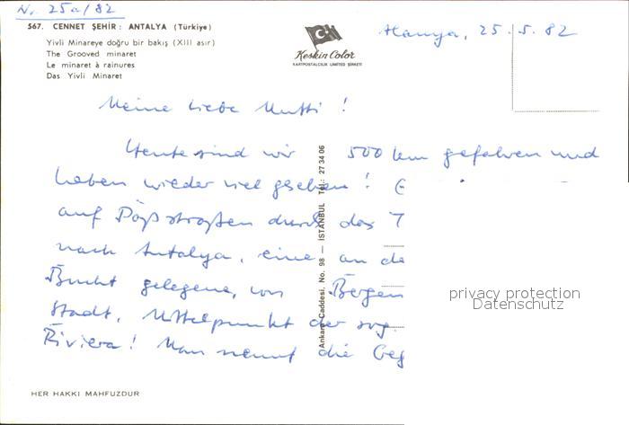 Antalya Yivli Minaret postalisch nicht gelaufen Erhaltung siehe scans
