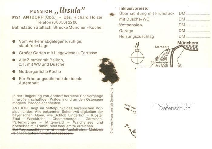 73785900 Antdorf Fliegeraufnahme Gesamtansicht m. Pension Ursula Aussenansicht postalisch nicht gelaufen Werbekarte (keine Postkarte) Erhaltung siehe scans [LiesaD40] KatCode: 11110009190113
