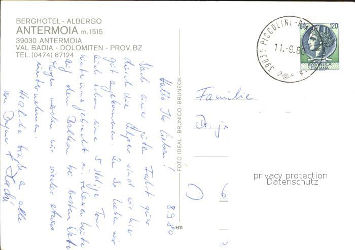 old postcard Antermoia Berghotel Albergo postalisch gelaufen Erhaltung siehe scans [FriedD77]