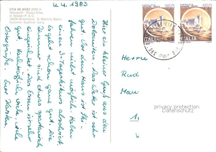 old postcard Antermoia Utia de Borz postalisch gelaufen Erhaltung siehe scans
