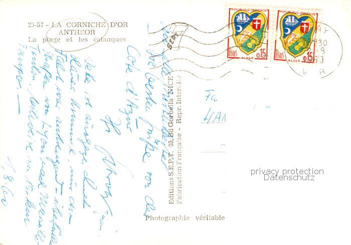 13835694 Antheor 83 Var La plage et les calanques postalisch gelaufen Erhaltung siehe scans [WerneD78] carte postale Wern Katcode 11170083183118